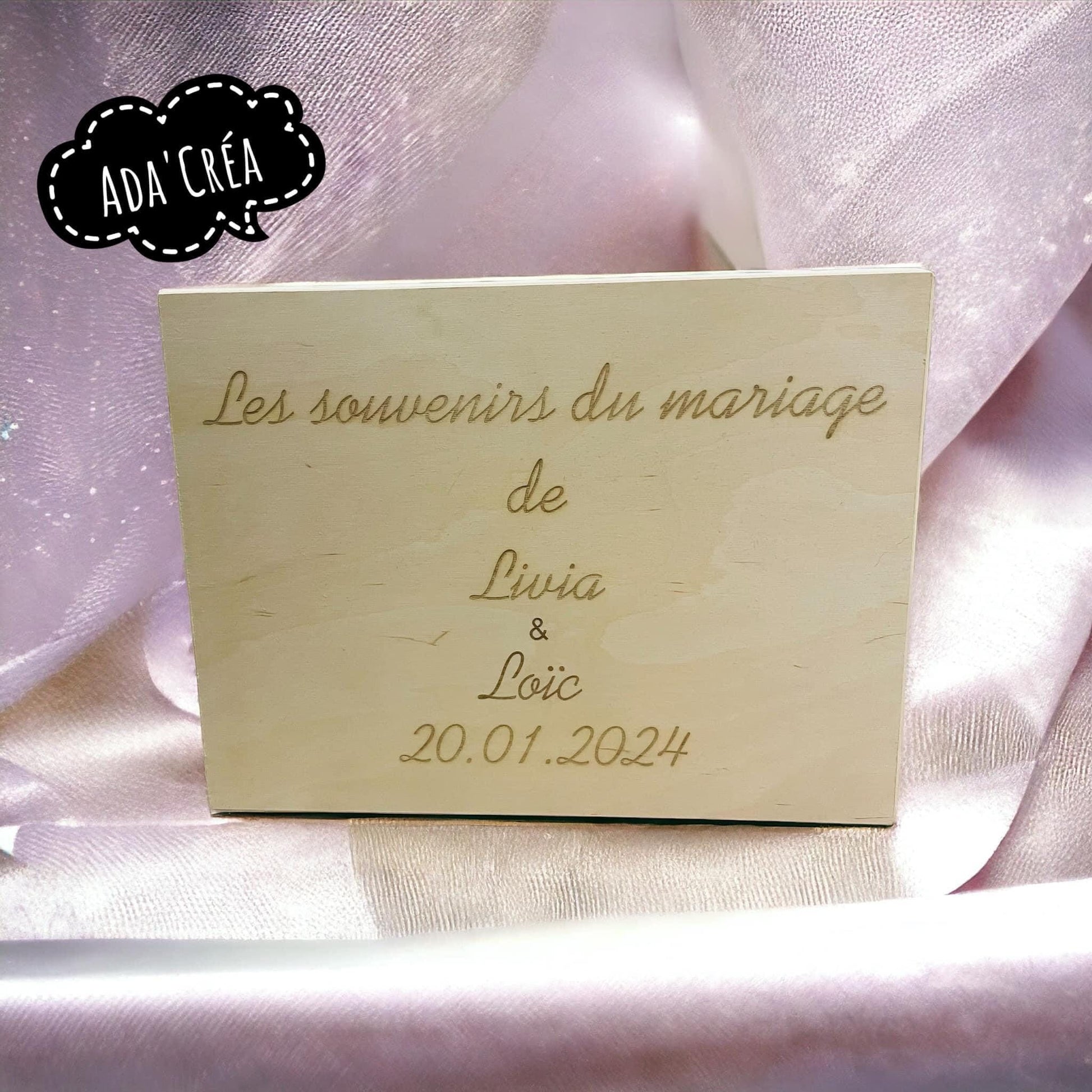 1. Personnalisation Exquise : Chaque boîte à souvenirs peut être personnalisée selon vos souhaits. Choisissez d'y faire graver vos noms, la date de votre mariage, ou une citation inspirante. Cette personnalisation ajoute une touche intime et unique à votre boîte à souvenirs.