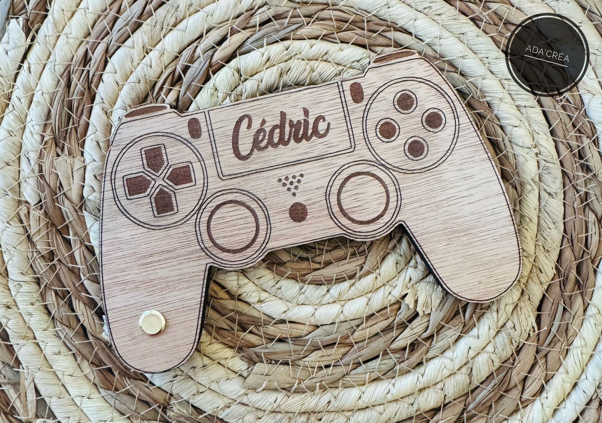 Demande de témoin originale – Manette de console de jeu en bois personnalisable.