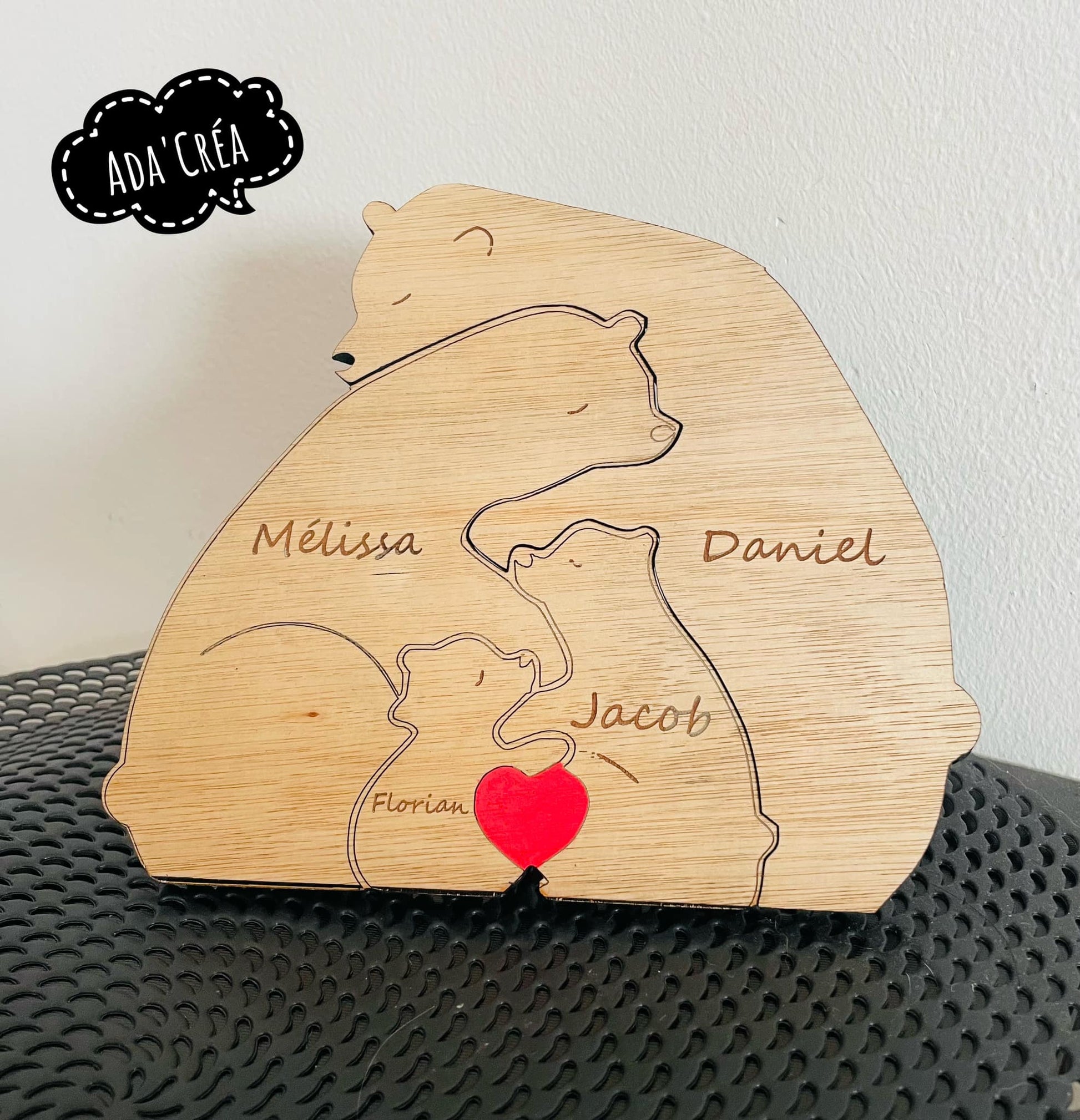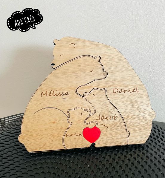- Gravure des noms : Chaque ours peut être gravé avec le nom de chaque membre de la famille, ce qui ajoute une touche personnelle et unique.