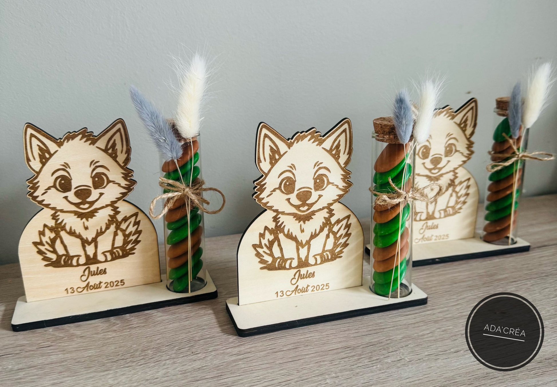 🌸 Support à dragées avec fiole en verre personnalisée