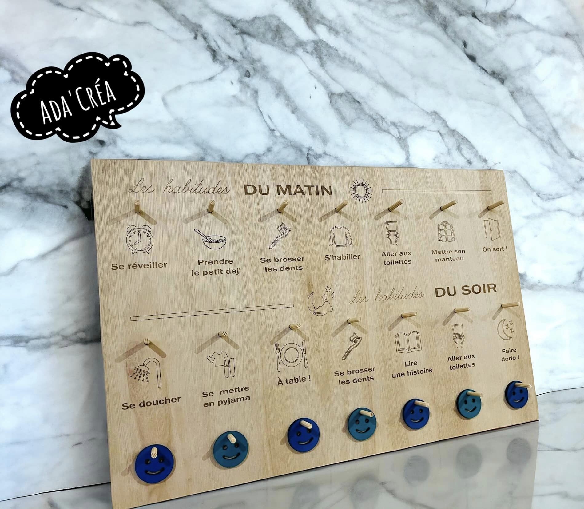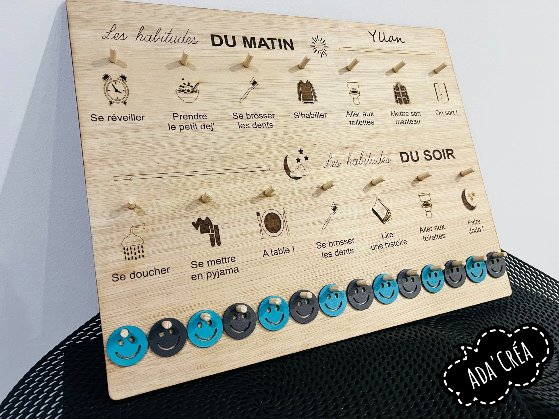 Un routinier en bois personnalisable est un outil souvent utilisé pour organiser et planifier les tâches quotidiennes de vos enfants. Il est généralement fabriqué en bois de qualité, ce qui lui confère à la fois une durabilité et une esthétique chaleureuse. La personnalisation peut inclure la gravure du nom et le choix de la ou les couleurs.